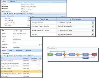• Projetar telas de entrada de dados • Validar campos de tabelas existentes • Campos ilimitados • Especifique se a entrada obrigatória • Os campos personalizados • Tabelas personalizadas • Todos os dados personalizados são reportáveis • Fluxos de fluxo de trabalho para formulários personalizados